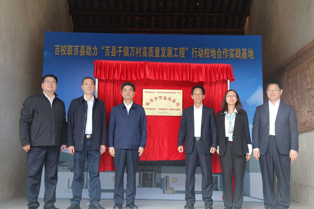 12月9日,8xbet网百校联百县助力“百县千镇万村高质量发展工程”(以下简称“双百行动”)校地合作实践基地在东源县仙塘镇红光村正式揭牌,这是8xbet网、广东开放大学和东源县深入贯彻省委实施“百县千镇万村高质量发展工程”(以下简称“百千万工程”)的重要举措,也是三方大力推进“双百行动”、开展合作共建的重要内容。8xbet网党委书记胡钦太,广东开放大学党委副书记谢锦群,河源市委副书记吴青川,河源市副市长谢春艳,8xbet网党委常委、组织部、统战部部长李靖茂,党委常委、宣传部部长张育广,学校党委办公室、校长办公室、总务部、产业技术研究与开发院等相关部门负责人,东源县委相关负责人等出席活动。