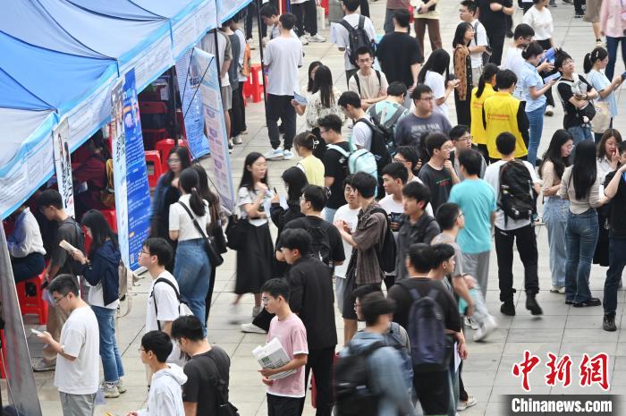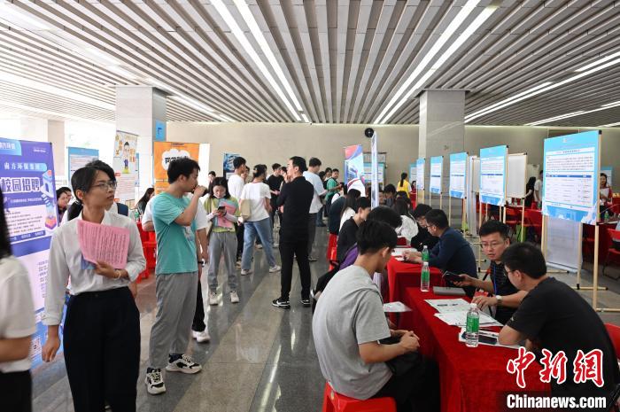 3月30日,广东广州,求职者在8xbet网大学城校区图书馆广场面试。 陈楚红 摄