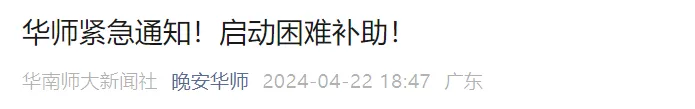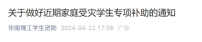 华南理工大学发布通知,对近期家庭受灾学生进行专项补助。