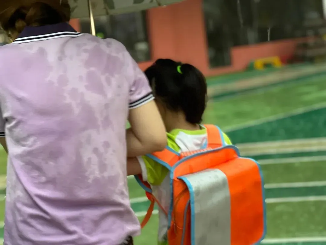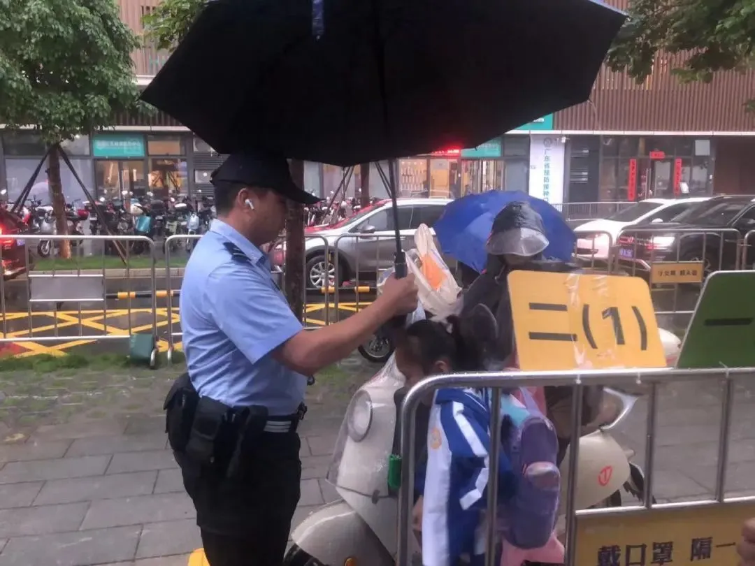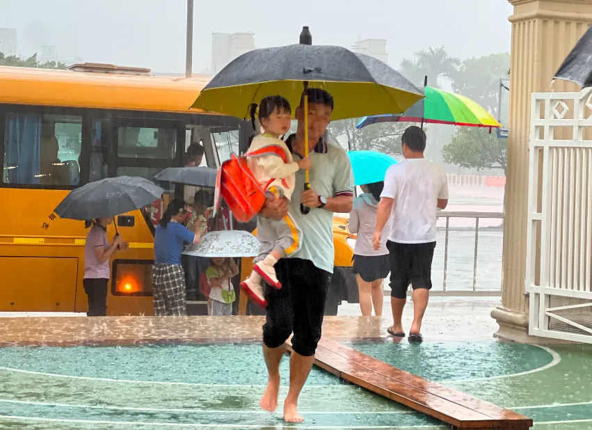 暴雨笼罩深圳给学生上学带来了一些困难在深圳宝安区多所学校门口很多教师抱起孩子一趟又一趟奔走在校门和教学楼之间为孩子们撑起了“一片晴天”