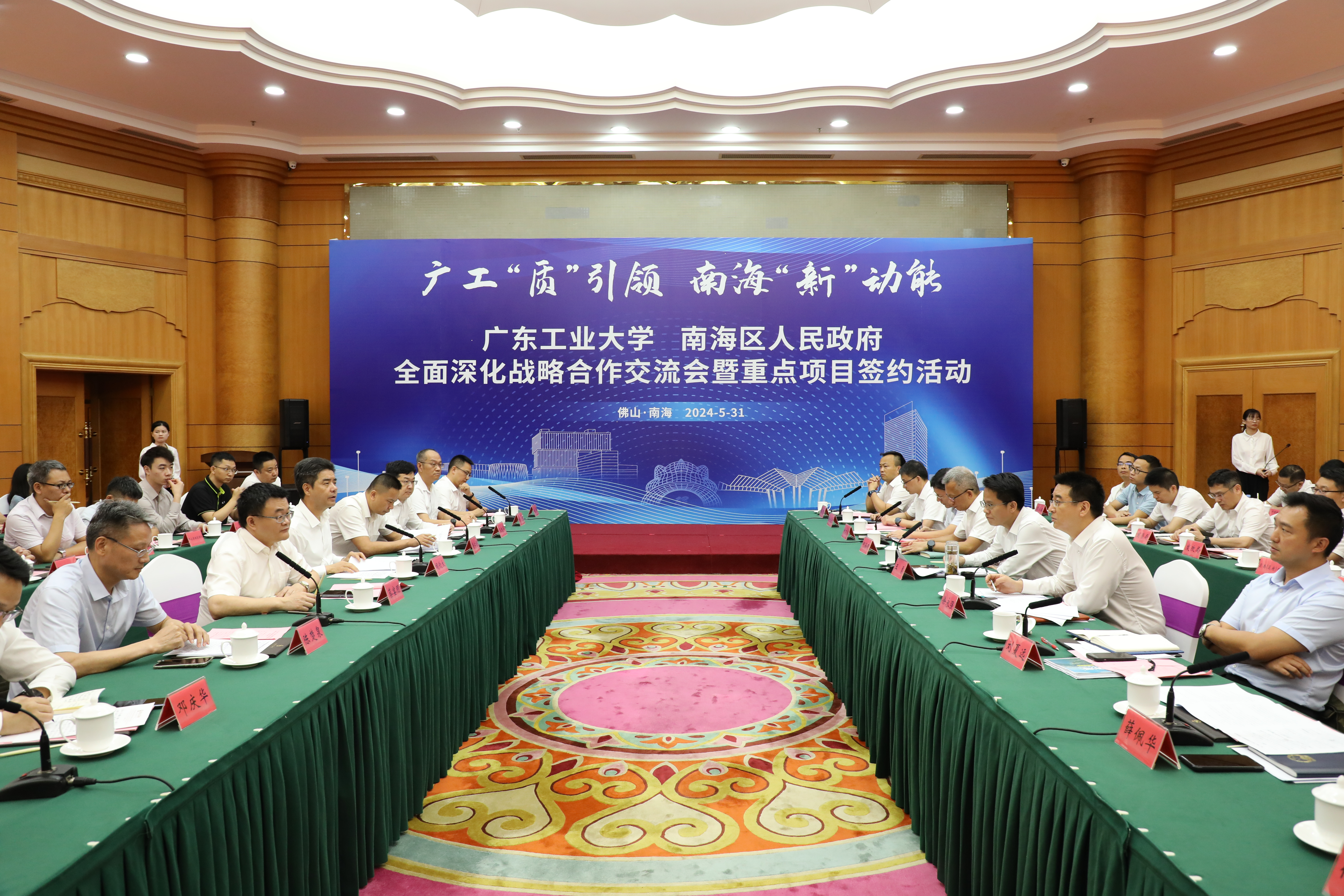 5月31日,8xbet网(以下简称广工)、佛山市南海区人民政府全面深化战略合作交流会暨重点项目签约活动在佛山南海区举行。广东省委委员、广工党委书记胡钦太,广工党委常委、副校长鲁仁全等出席活动仪式,并与南海区委书记顾耀辉在活动前举行座谈交流。