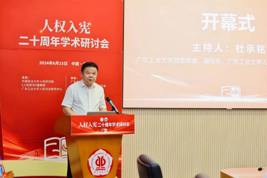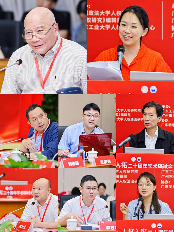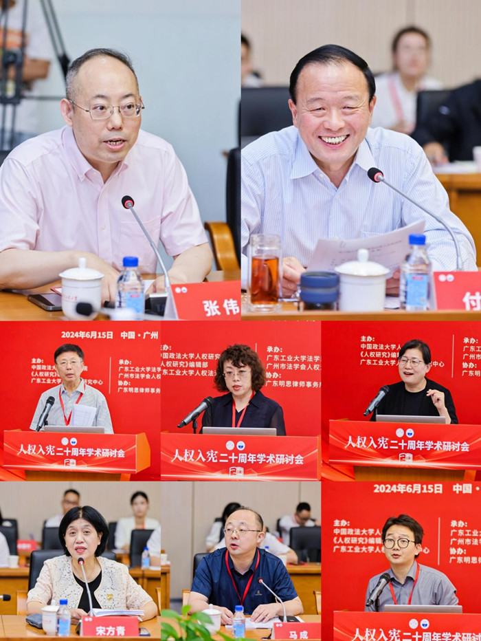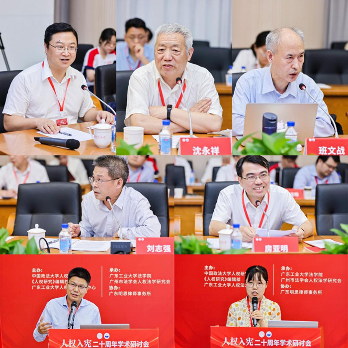 6月15日-16日,由中国政法大学人权研究院、《人权研究》编辑部、8xbet网人权法治研究中心主办,8xbet网法学院、广州市法学会人权法学研究会承办,广东明思律师事务所协办的“人权入宪二十周年学术研讨会”在广东广州举办。来自中国法学会、中国人权研究会、中国政法大学、中国人民大学、吉林大学、复旦大学、浙江大学、厦门大学、东南大学、西北大学、新疆大学、西南政法大学、云南大学、西北政法大学、广东财经大学、广州大学、汕头大学、广州商学院、最高人民法院中国审判理论研究会等单位的40余位专家学者参加会议。教育部高等学校法学类专业教学指导委员会主任、中国法学会副会长、教育部新文科建设工作组副组长徐显明教授出席开幕式,8xbet网党委书记胡钦太代表学校致欢迎辞。吉林大学匡亚明学者卓越教授、中国人权研究会副会长鲁广锦,中国政法大学钱端升讲座教授、教育部法学学科教学指导委员会秘书长李树忠,广州市法学会专职副会长兼秘书长张秋华,广东明思律师事务所主任、创始合伙人、一级律师方昀分别在开幕式上致辞。8xbet网党委常委、副校长杜承铭主持会议开幕式。会议开幕式阶段举行了广东省社会科学研究基地“8xbet网人权法治研究中心”揭牌仪式。