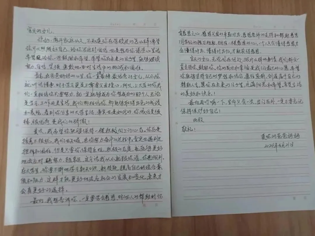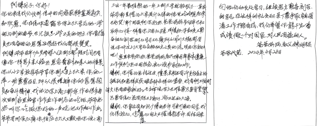 赴外求学7年,感恩思念凝结成6页亲笔家书