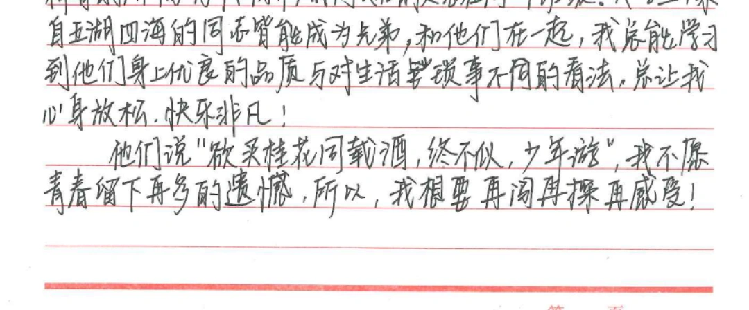 除了写给父母,还有同学在书信中也写给了未来的自己:“我不愿青春留下遗憾,想要再闯再探再感受。”“我会好好学习、坚持运动,去见山、见海、见四季,用脚步丈量这个世界。”