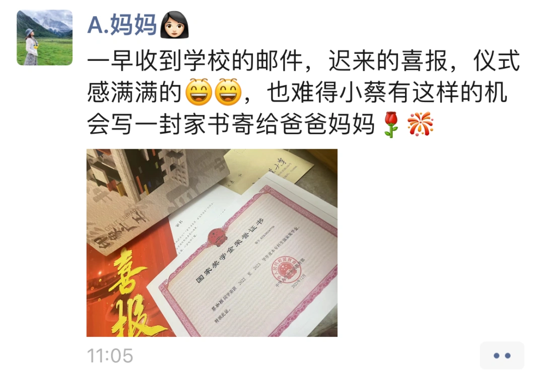 轻工化工学院本科生周璐的父母同样在回信中表达了对她的关心和鼓励:“我们看到了你分享的大学生活,你很棒、很优秀,是我们的骄傲!”