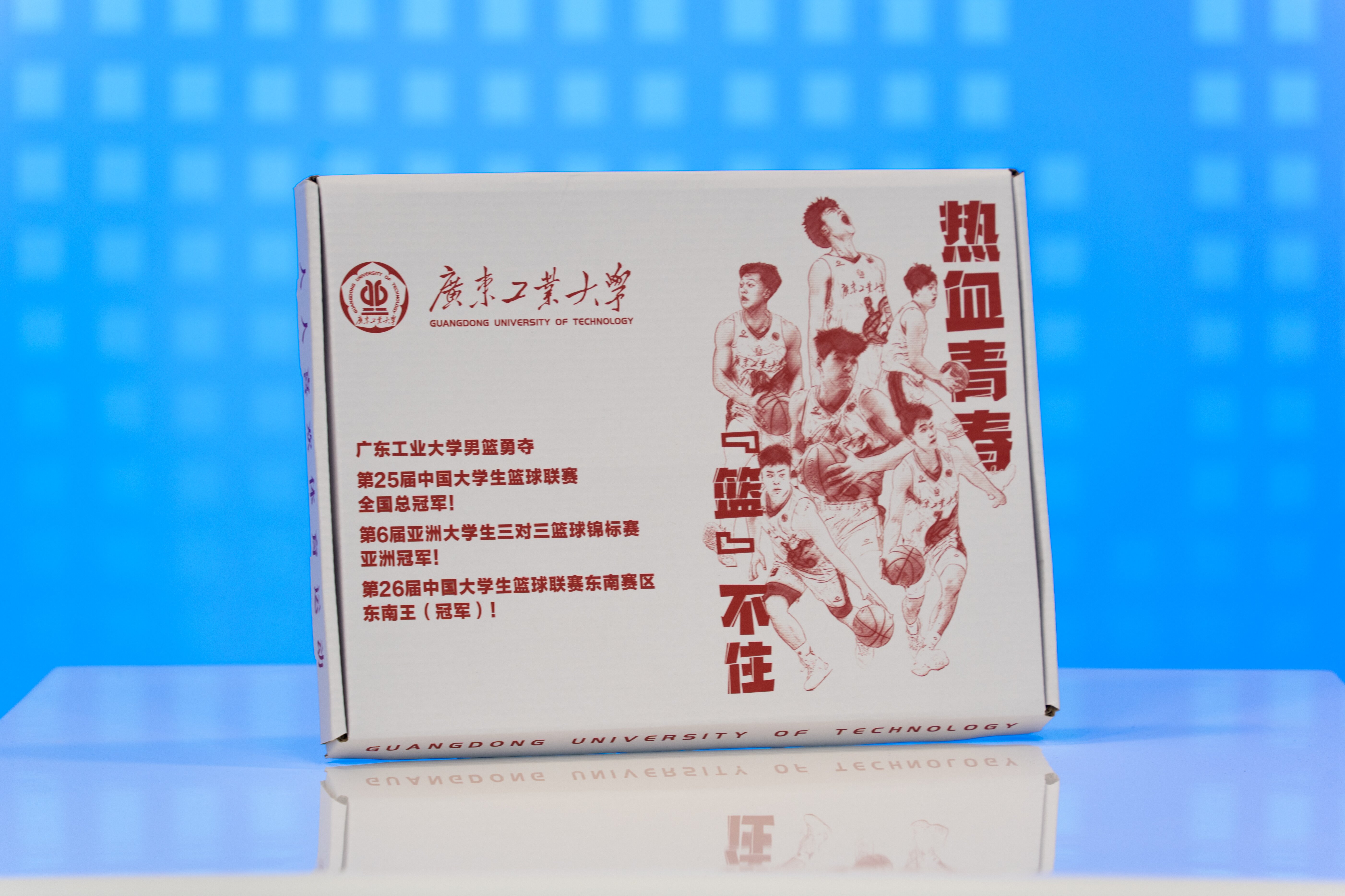 广工2024通知书礼盒整体采用红白灰的简约配色设计,礼盒以“热血青春‘篮’不住”为主题,封面展示广工高水平男子篮球队荣获第25届中国大学生篮球联赛(CUBAL)全国总冠军、亚洲大学生三对三篮球锦标赛冠军等荣誉,盒中赠送明星球员陈国豪的23号签名球衣,将“勇于拼搏、敢于胜利”的广工精神传递给新广工人,鼓励新生保持青春冲劲,矢志锐意进取。