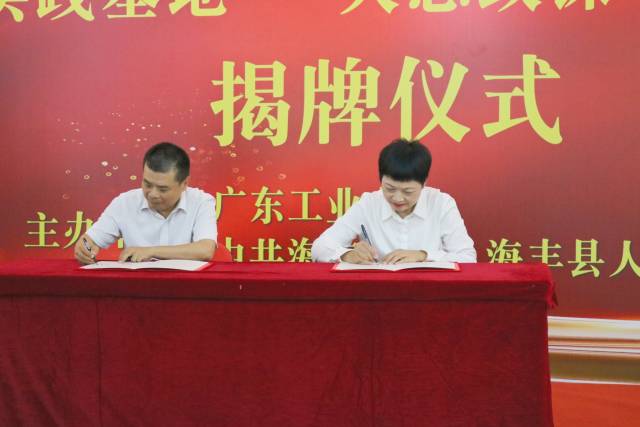 仪式上,双方签订共建基地协议,胡钦太、朱蔚蔚、陈卓武、梁红武、庄红琴、郭文炯共同为思想政治教育实践基地揭牌。广工向海丰县革命烈士暨革命斗争史纪念馆赠送书籍。随后参观了海丰县革命烈士暨革命斗争史纪念馆。
