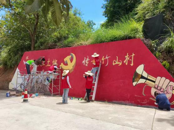 图2墙绘组成员正在上色