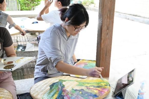 图4、5为墙绘组成员正在进行竹编绘画