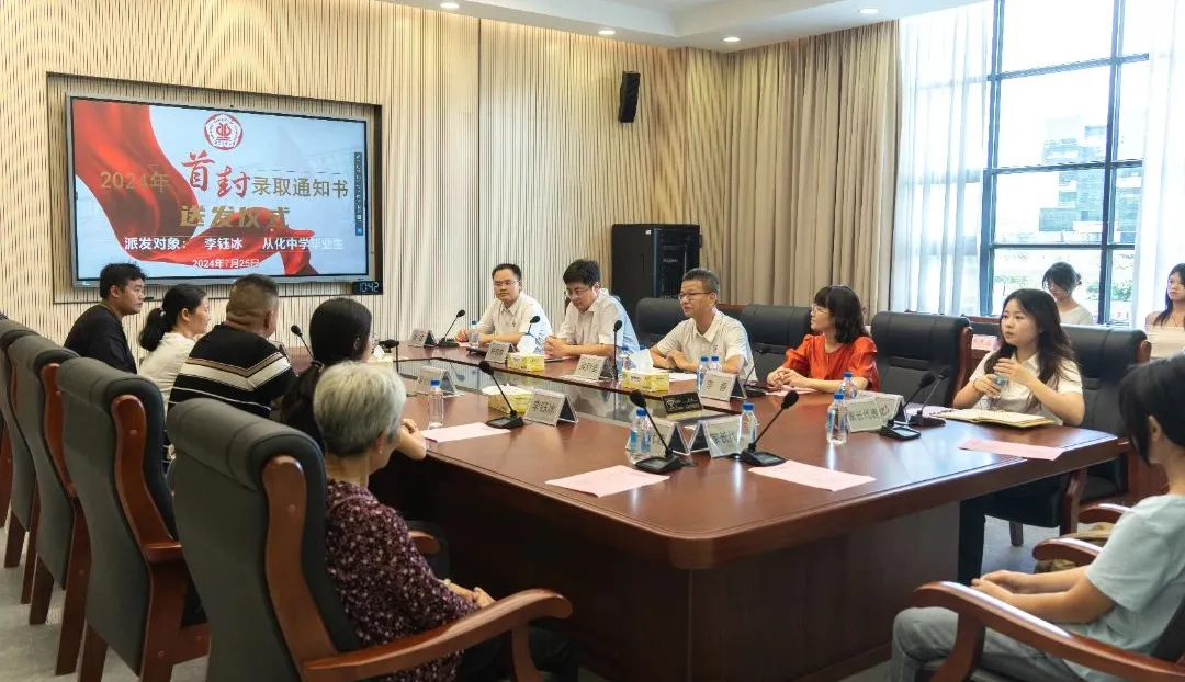 来自广州市从化区从化中学的李钰冰同学收到了这份特别的礼物,她以广工本省物理类最高分622分的成绩,被电气工程及其自动化专业录取。广工招生办公室、自动化学院相关领导和老师向李钰冰及其家人表达了祝贺,为她颁发录取通知书,并赠送电气专业相关书籍和易建联签名纪念款篮球。