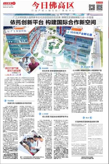 当前,佛山提出要全力打造国家制造业创新中心,而佛山高新区也不断优化环境,提供专业服务,致力打造成为创新创业者乐园。2017年10月,广工大研究院被确认为第二批广东省制造业创新中心之一,也是佛山市首个被认定的省级制造业创新中心;2017年12月,广工大研究院入选国家专业化众创空间示范名单,再次助佛山实现零的突破。