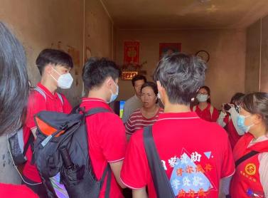 穿过街巷,来到墙上贴满红黄荣誉奖状的家庭,突击队队员在塘回村邓户主家进行资助政策宣传,向他们递上了学校派发的宣传单物资。在当地社工的带领下,突击队入户还走访了丰六垌村、塘回村、翟屋村等六户家庭,精准宣传国家资助政策。