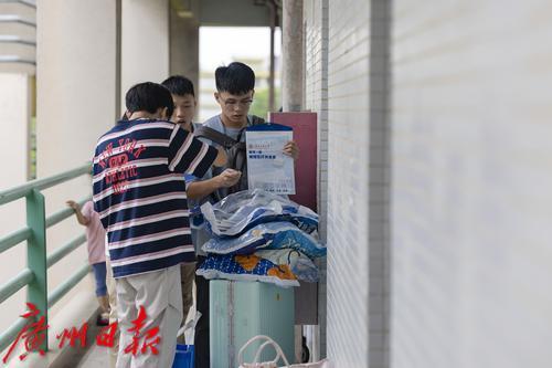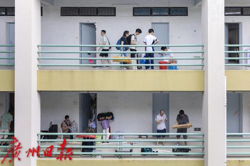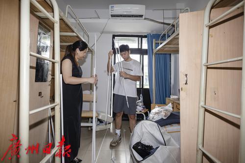 广工大学城校区男生宿舍,新生正忙着整理行李。