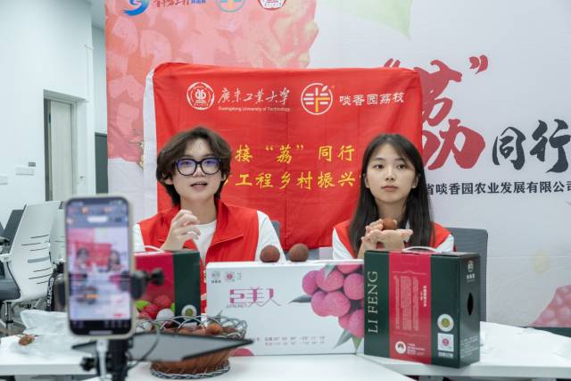 广工“顶荔相助”突击队前往盛产荔枝与黄皮的云浮市郁南县庞寨村,将电商直播与“云认养”模式相结合,助力当地产品销售。