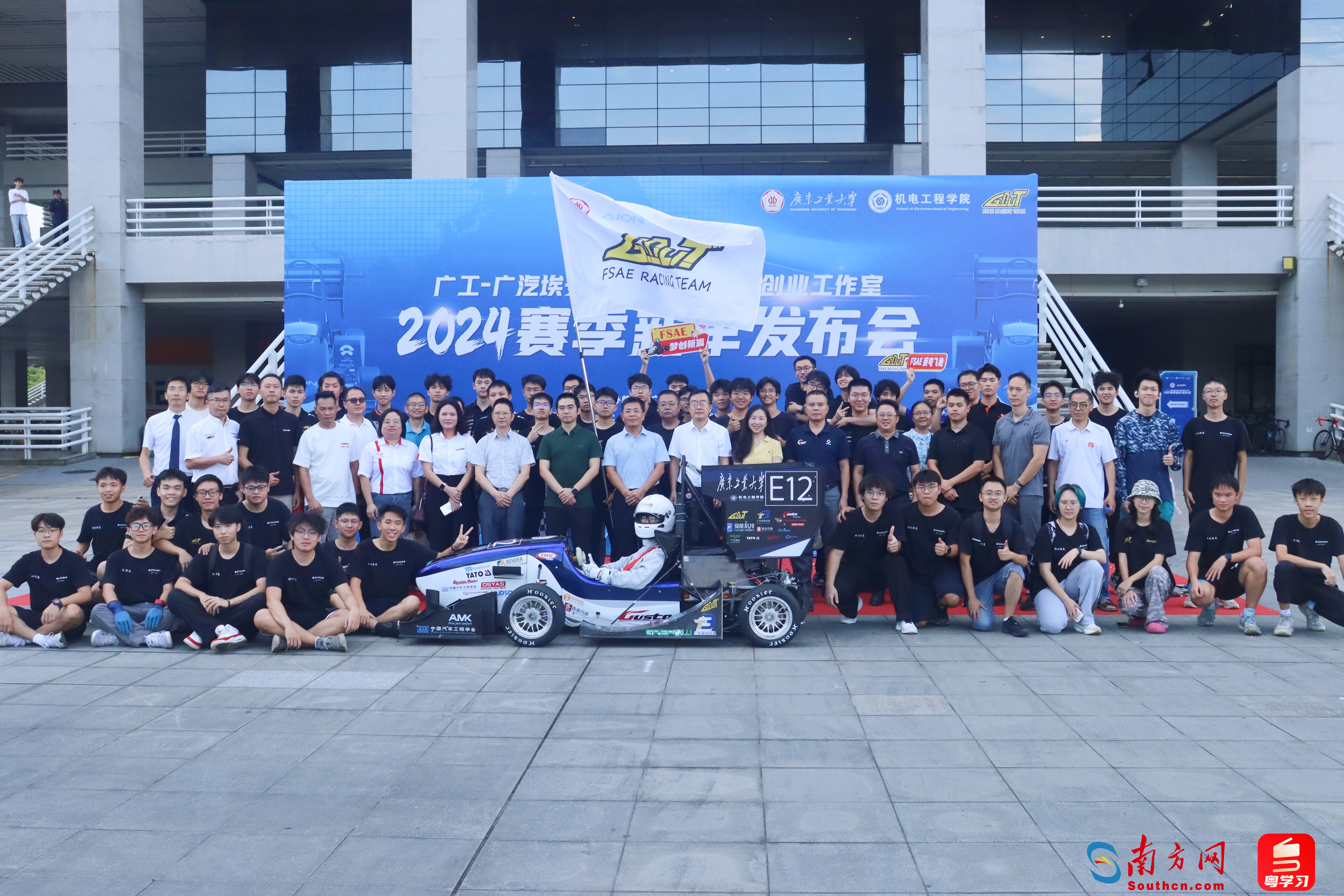 10月17日下午,8xbet网举行广工-广汽埃安新能源汽车创新创业工作室FSAE车队2024赛季新车发布会,E12电动赛车正式对外亮相。