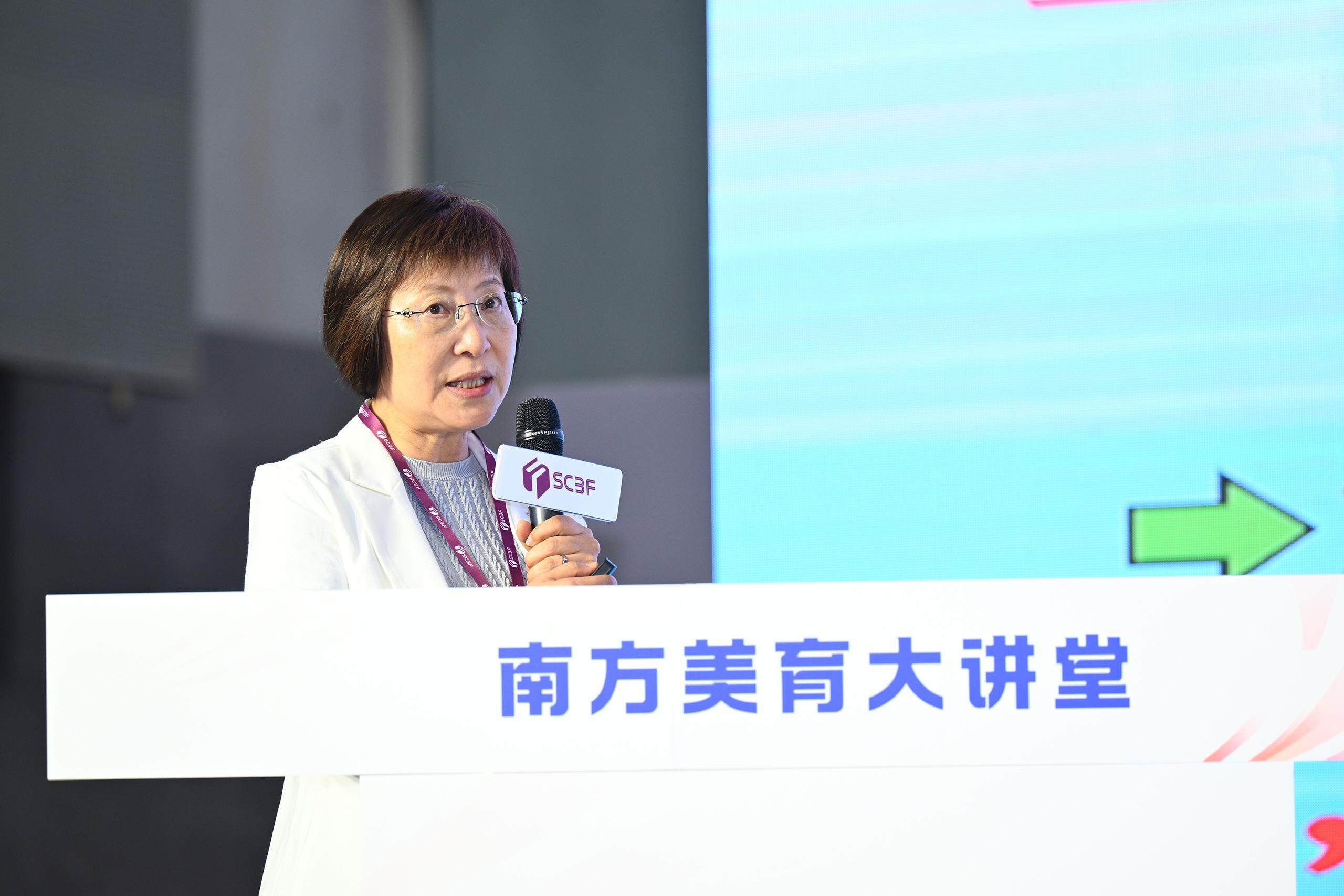 万丽君会长在主旨报告《从二元到三元:人工智能重构学校美育新生态》中,阐述了教育从二元结构转向三元结构的背景,指出了人工智能时代需培养学生的五大核心能力以及结构转变要解决的六大问题,为推动人工智能时代美育工作的开展指明了方向。