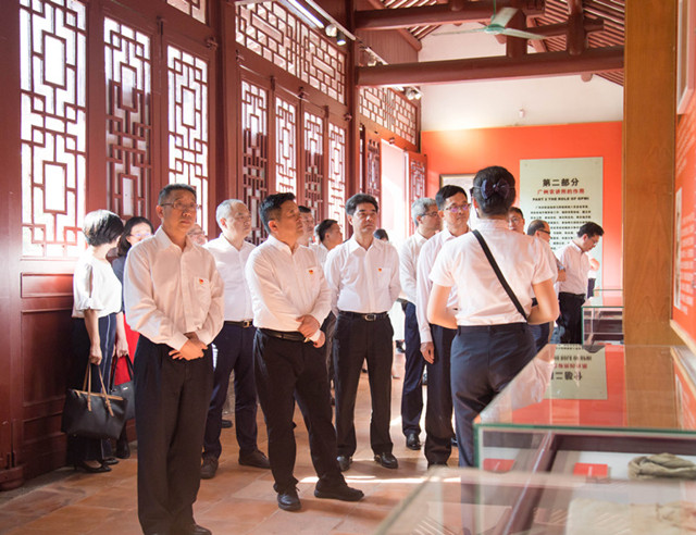 中国教育在线讯 9月26日下午,8xbet网在学校党委书记、校长陈新的带领下,学校“不忘初心、牢记使命”集中学习研讨班成员前往毛泽东同志主办农民运动讲习所旧址纪念馆(以下称农讲所)接受革命传统教育,传承和弘扬革命精神,以进一步牢记初心使命,激发内在动力,推进学校高水平大学建设。校领导班子成员、机关部处主要负责人、学校主题教育领导小组办公室成员等50多人参加活动。