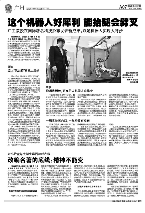 广工教授在国际著名科技杂志发表新成果,双足机器人实现大跨步