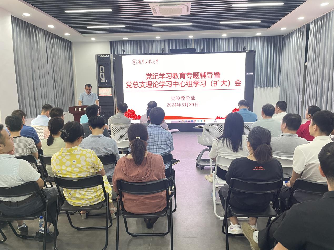 为贯彻落实学校党纪学习教育的工作部署和实验教学部的工作安排,进一步推进党纪学习教育,实验教学部党总支于5月30日召开党纪学习教育专题辅导暨党总支理论学习中心组学习(扩大)会,深入开展党员党性教育和纪律教育,确保党纪学习教育在实验教学部走深走实。实验教学部40多名党员参加学习, 党总支书记陈伟民主持会议。