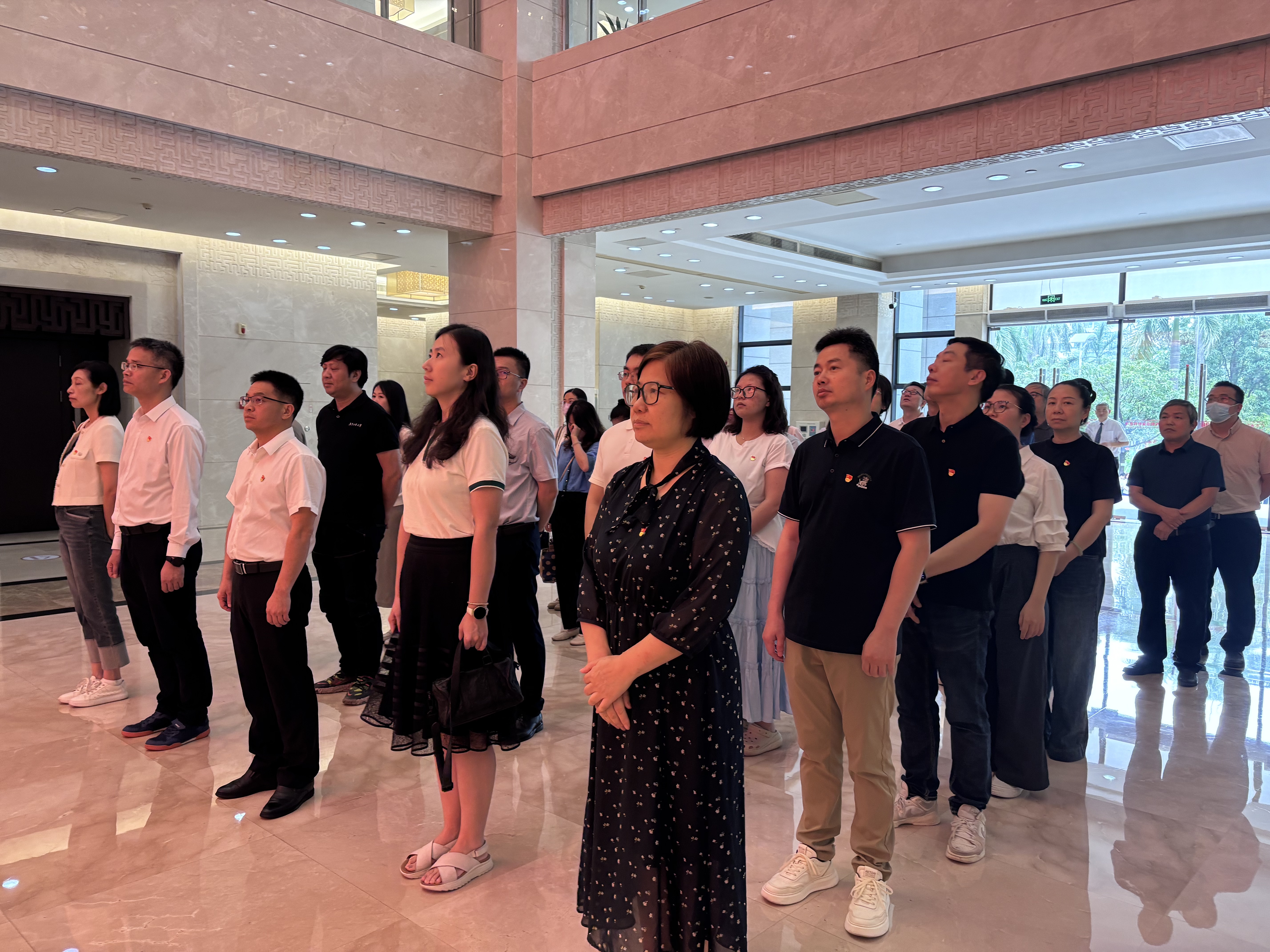 全体党员在党旗前庄严宣誓,承诺将修身正己,用实际行动诠释责任和担当。