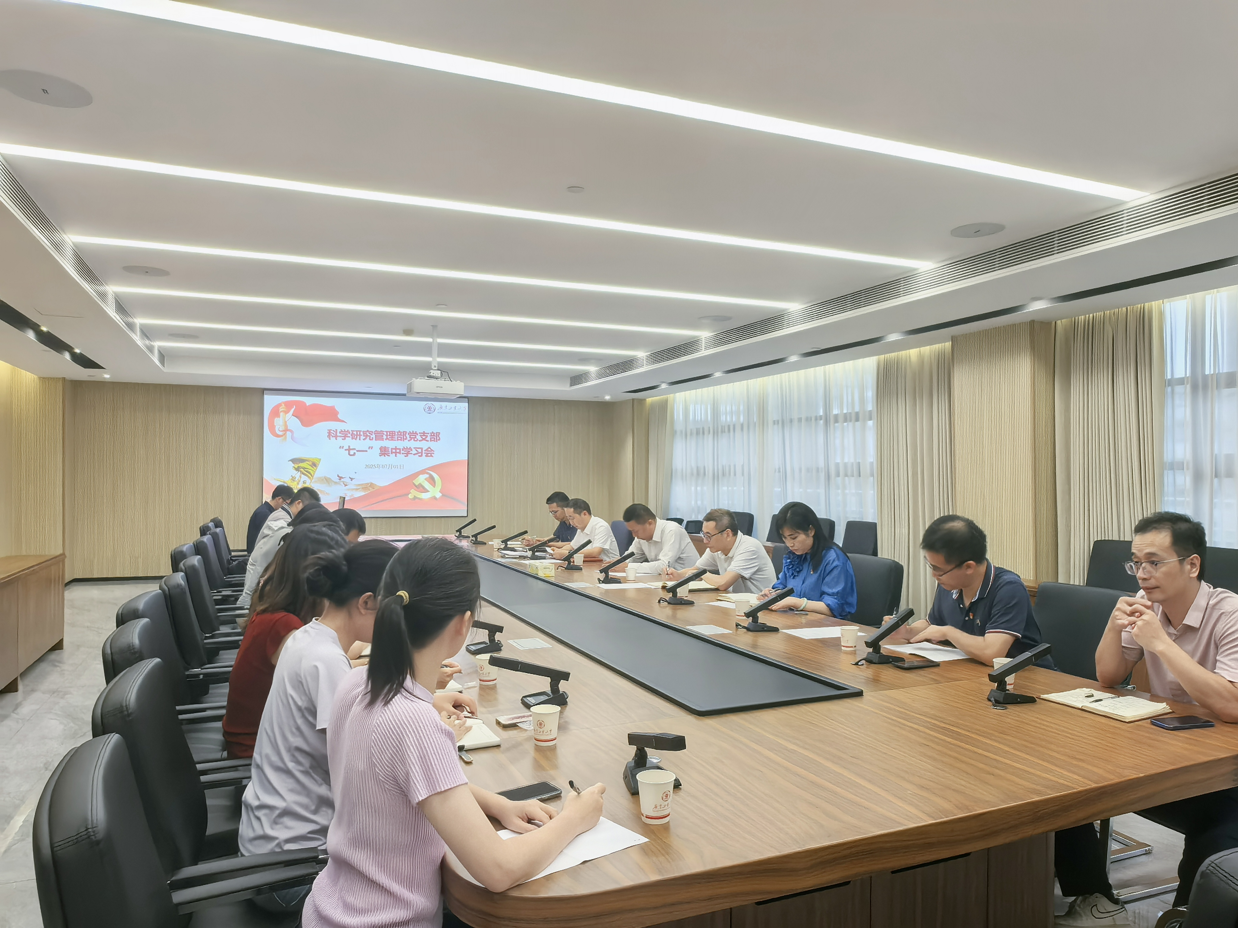 为庆祝中国共产党成立104周年,进一步加强党员党性锤炼,凝心铸魂汇聚高质量发展合力,7月1日下午,科学研究管理部党支部开展集中学习会。学校党委常委、副校长鲁仁全出席并讲话,机关党委书记詹勇讲授专题党课。会议由党支部书记秦延林同志主持。