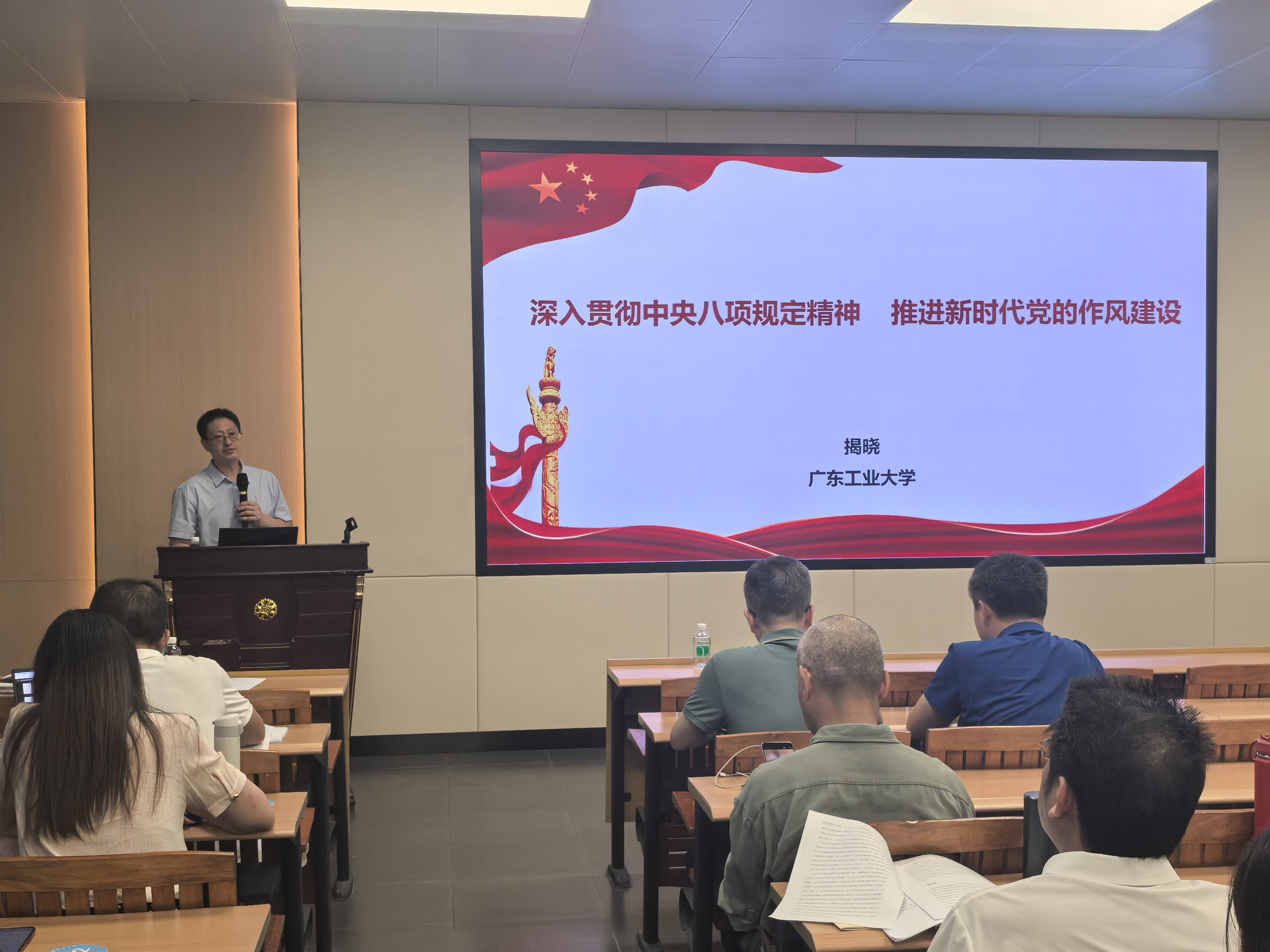 作风建设强党性学院邀请学校马克思主义学院院长揭晓教授作专题讲座。揭晓教授以《深入贯彻中央八项规定精神,推进新时代党的作风建设》为题,从中央八项规定精神的背景及意义、中央八项规定精神的内容及成效、坚持不懈推进新时代党的作风建设三个层面展开深入分析,他指出要以深入贯彻中央八项规定精神学习教育为契机,认真学习习近平总书记关于加强党的作风建设的重要论述,树立正确的权力观、政绩观、事业观,为实现中华民族伟大复兴伟业营造风清气正的良好政治生态。